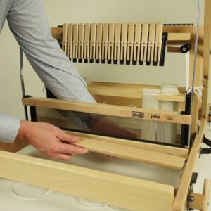 Ashford bordvev 60 – 8 skaft leveres nå med skyttelbane! Dette er en god og allsidig bordvev. Den kan foldes sammen for transport eller lagring, også etter vevingen er påbegynt.