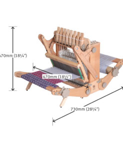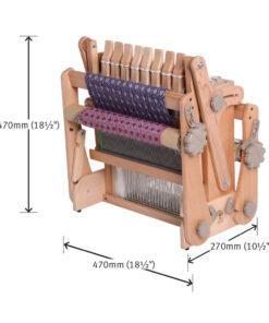 «Katie» er en perfekt vev for kurs, prøver og reise. Den har 8 skaft og vevbredden er 30 cm. Den er lett å slå sammen og får plass i medfølgende veske