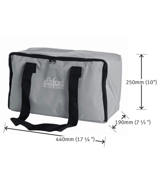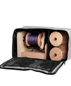 Ashford E-Spinner 3 leveres komplett med bæreveske, pausekontroll, hentekrok, spolestativ med brems, 3 jumbospoler, pipeåpningsinnsats på 9 mm og en flaske smøreolje.