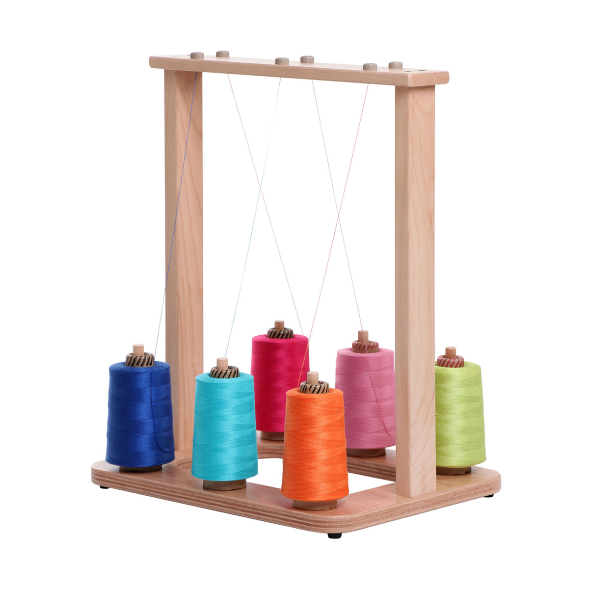 Praktisk garnholder, som holder styr på trådene dine når du renner. Står stødig, på gummiføtter, og passer til mange ulike kons.