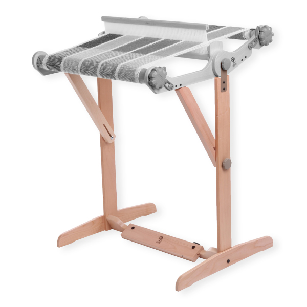 Ashford gulvstativ – Knitters Loom gjør at du ikke lenger er avhengig av et bord for å veve. Stativet gir deg en behagelig arbeidshøyde, muligheten til å vinkle veven fritt, samt en fin fotstøtte når du vever. Ashford gulvstativ – Knitters Loom passer til alle bredder – 30, 50 og 70 cm. Gulvstativet monteres raskt med bolt og mutter og har smart oppbevaring i fotstøtten for unbraconøkkelen. Kompakt oppbevaring når stativet ikke er i bruk.