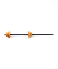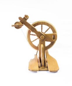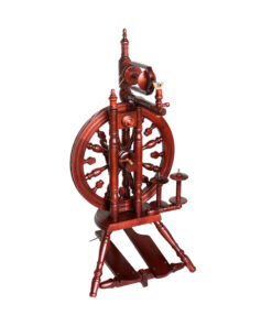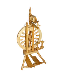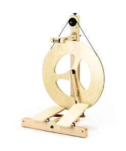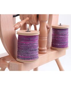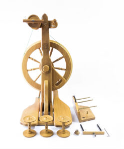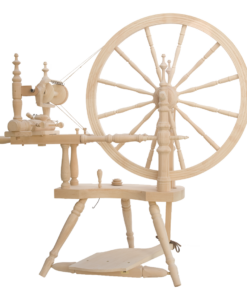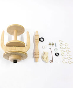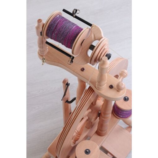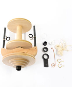 Den har innebygget spolestativ, og det følger med hentekrok og 3 stk. 90 mm spoler. Rokken leveres flatpakket, men er enkel å sette sammen.