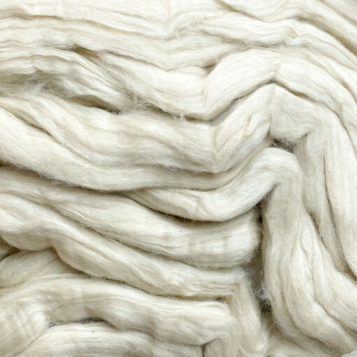 Sliveren er laget av Pima-bomull, kjent for sine ekstra lange fibre (stapellengde 35–40 mm), som gir mykt, sterkt og holdbart garn. Den naturlige krympen i fibrene er beholdt, noe som gjør dem lettere å spinne og gir et jevnt resultat. Fibrene kan spinnes alene eller blandes med andre naturfibre.