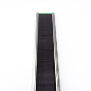 Vevskje fra Glimåkra, 12 cm høy og i rustfritt stål. Denne høyden anbefales til vever fra Ashford og Louët, for å sikre et godt skille. Vevskjeene er å få i lengder fra 30 cm til 150 cm og i ulike tettheter. Tettheten beskrives som antall tinn (spalter) pr. 10 cm. En vevskje som f. eks. beskrives som 50-10 har da 50 tinn pr. ti cm, som gir fem pr. cm. “50-10” uttales som “femti på ti”