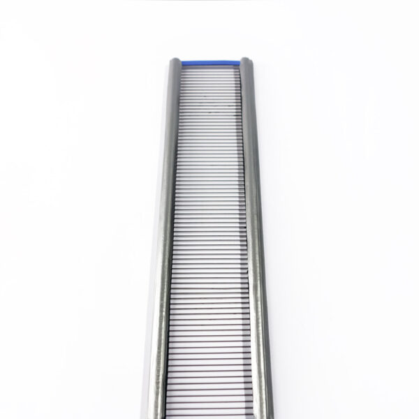 Standard vevskje fra Glimåkra, 10,5 cm høy og i rustfritt stål. De er å få i lengder fra 30 cm til 150 cm og i ulike tettheter. Tettheten beskrives som antall tinn (spalter) pr. 10 cm. En vevskje som f. eks. beskrives som 50-10 har da 50 tinn pr. ti cm- som gir fem pr. cm. “50-10” uttales som “femti på ti”