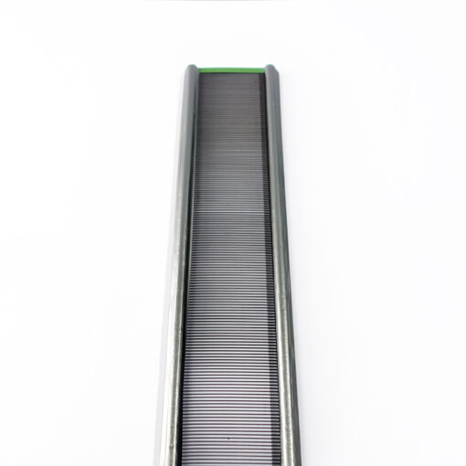 Vevskje fra Glimåkra, 12 cm høy og i rustfritt stål. Denne høyden anbefales til vever fra Ashford og Louët, for å sikre et godt skille. Vevskjeene er å få i lengder fra 30 cm til 150 cm og i ulike tettheter. Tettheten beskrives som antall tinn (spalter) pr. 10 cm. En vevskje som f. eks. beskrives som 50-10 har da 50 tinn pr. ti cm, som gir fem pr. cm. «50-10» uttales som «femti på ti»