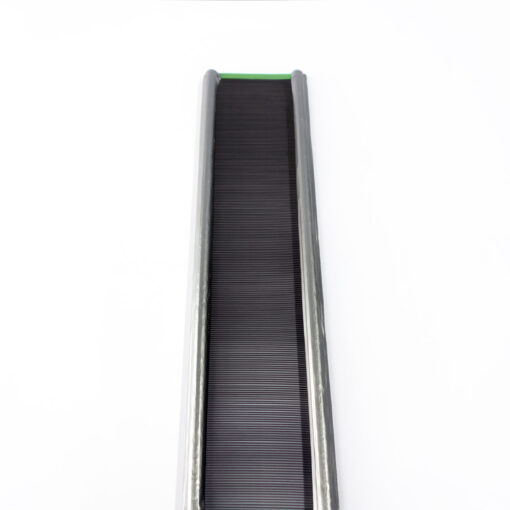 Vevskje fra Glimåkra, 12 cm høy og i rustfritt stål. Denne høyden anbefales til vever fra Ashford og Louët, for å sikre et godt skille. Vevskjeene er å få i lengder fra 30 cm til 150 cm og i ulike tettheter. Tettheten beskrives som antall tinn (spalter) pr. 10 cm. En vevskje som f. eks. beskrives som 50-10 har da 50 tinn pr. ti cm, som gir fem pr. cm. «50-10» uttales som «femti på ti»
