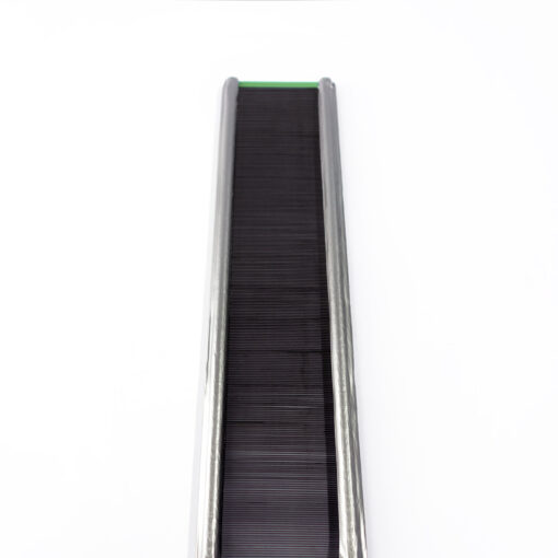 Vevskje fra Glimåkra, 12 cm høy og i rustfritt stål. Denne høyden anbefales til vever fra Ashford og Louët, for å sikre et godt skille. Vevskjeene er å få i lengder fra 30 cm til 150 cm og i ulike tettheter. Tettheten beskrives som antall tinn (spalter) pr. 10 cm. En vevskje som f. eks. beskrives som 50-10 har da 50 tinn pr. ti cm, som gir fem pr. cm. «50-10» uttales som «femti på ti»