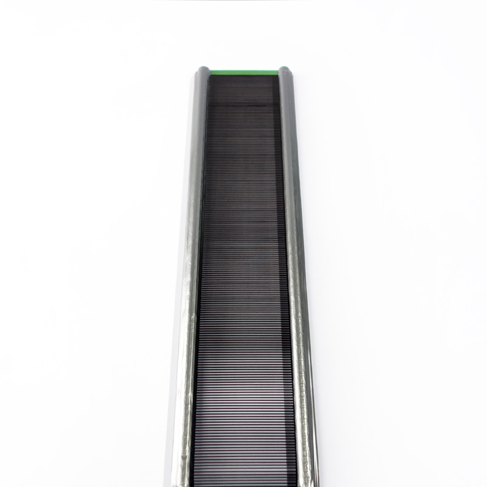 Vevskje fra Glimåkra, 12 cm høy og i rustfritt stål. Denne høyden anbefales til vever fra Ashford og Louët, for å sikre et godt skille. Vevskjeene er å få i lengder fra 30 cm til 150 cm og i ulike tettheter. Tettheten beskrives som antall tinn (spalter) pr. 10 cm. En vevskje som f. eks. beskrives som 50-10 har da 50 tinn pr. ti cm, som gir fem pr. cm. «50-10» uttales som «femti på ti»