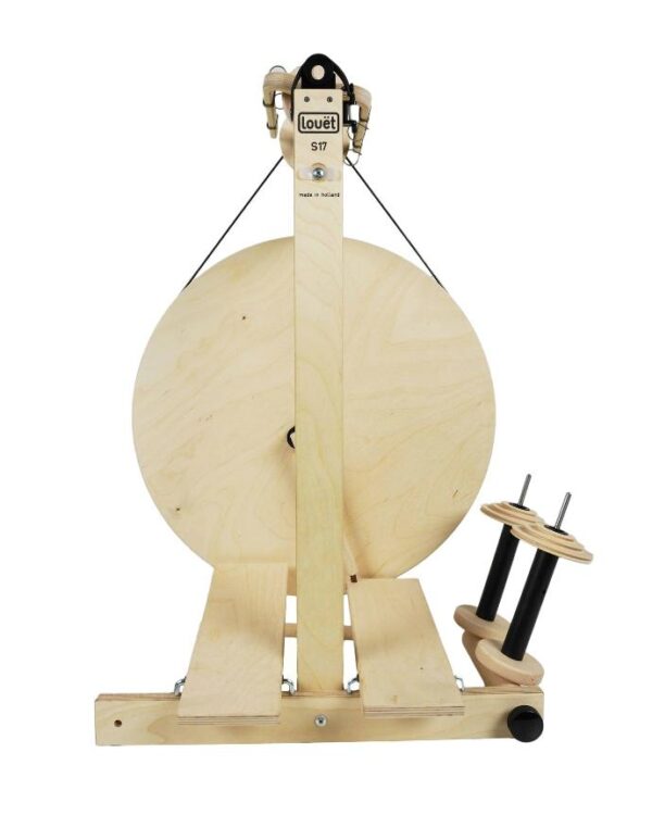 Det følger med 3 spoler. Rokken leveres flatpakket, men er enkel å sette sammen. Det anbefales at den oljes eller lakkeres.