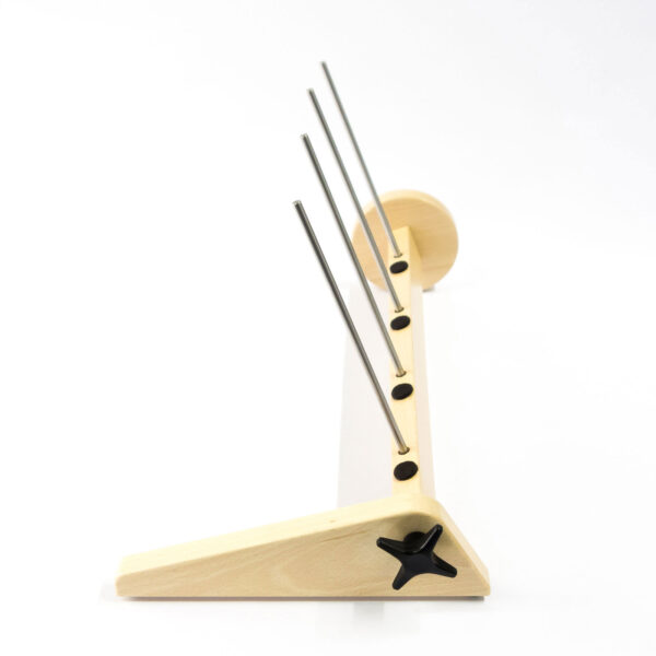 Louet spolestativ som står fritt. Justerbar spenning. Stativet er laget i bøk og er lakkert. Det er plass til fire standardspoler eller tre store spoler.