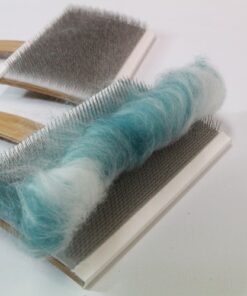 Majacraft karder – 96 tpi (tenner per inch) er et par uslålige håndkarder til finere fiber og for blanding av fiber og farger.