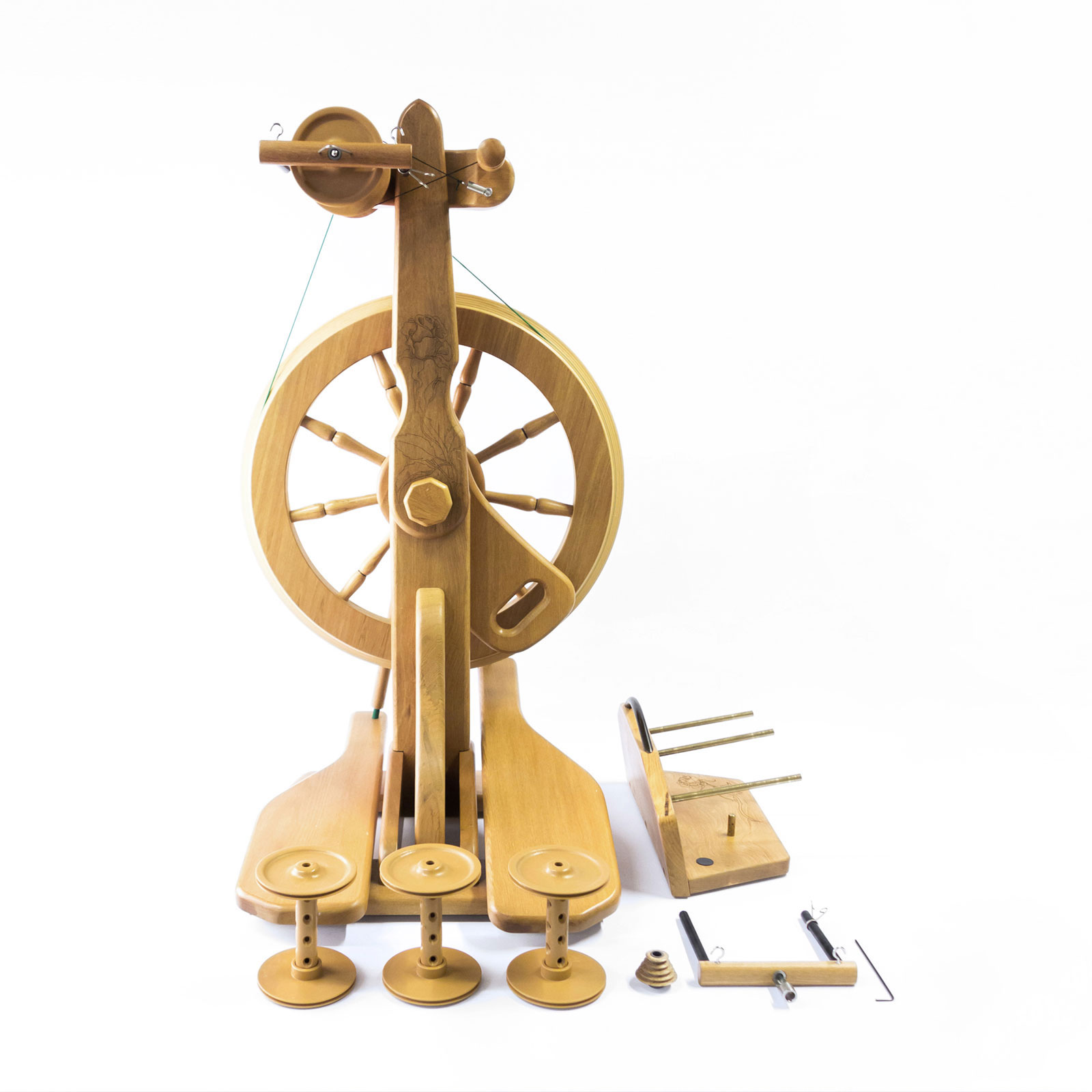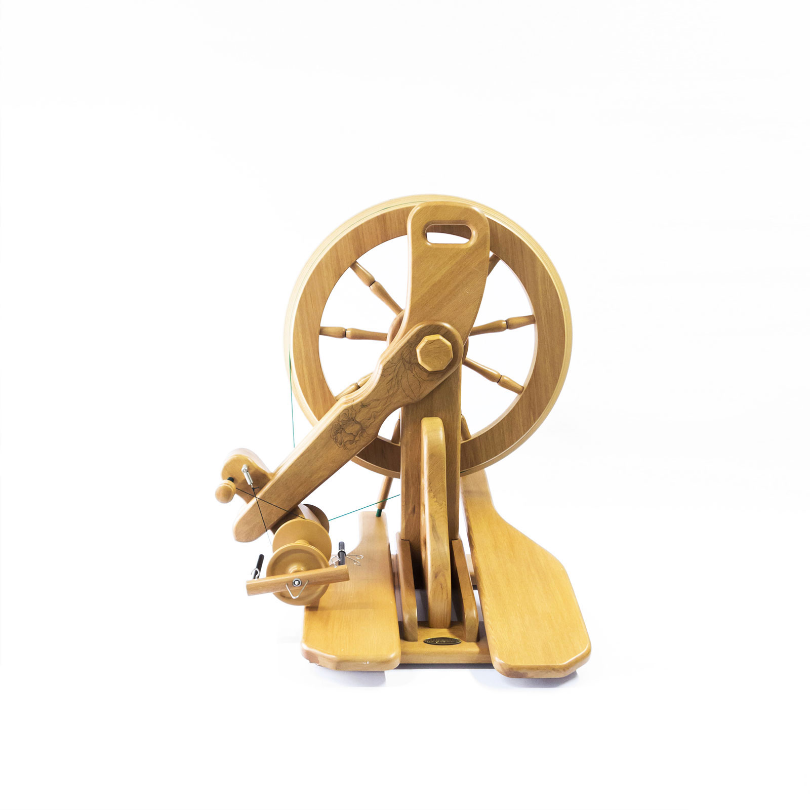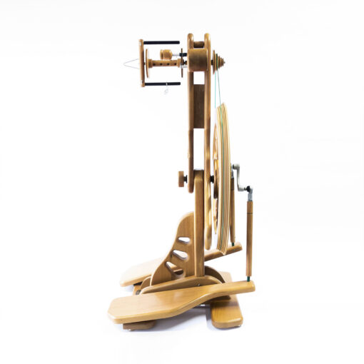 Dette er en rokk med spolebrems, to trøer, vedlikeholdsfrie kulelagre og trinnløs utveksling. Den er enkel i bruk, selv om den gir deg mange muligheter for hva slags garn du vil spinne.