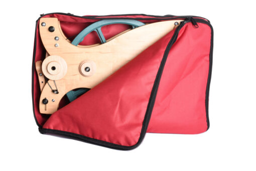 Polstret bæreveske til Sidekick. I tillegg til rokken er det plass til 3 spoler og Schachts spolestativ.