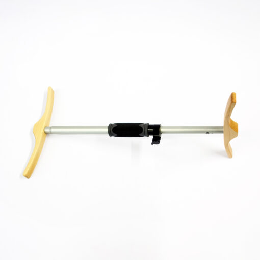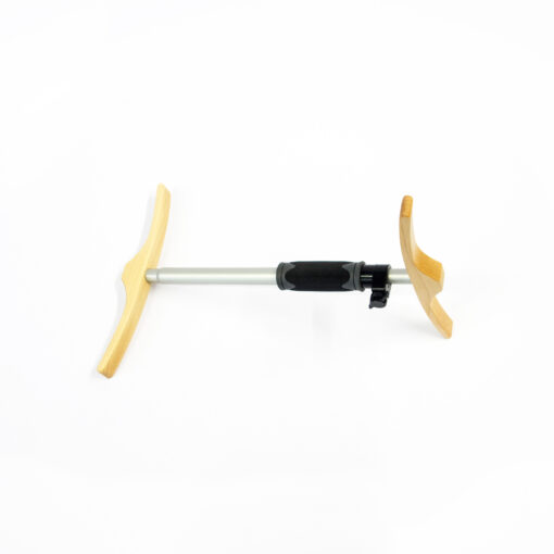 Håndholdt hespetre fra Schacht. Justerbar lengde, lett å slå sammen og godt å holde i. Den samme mekanismen som justerer lengden gjør det også svært lett å få hespen av hespetreet.
