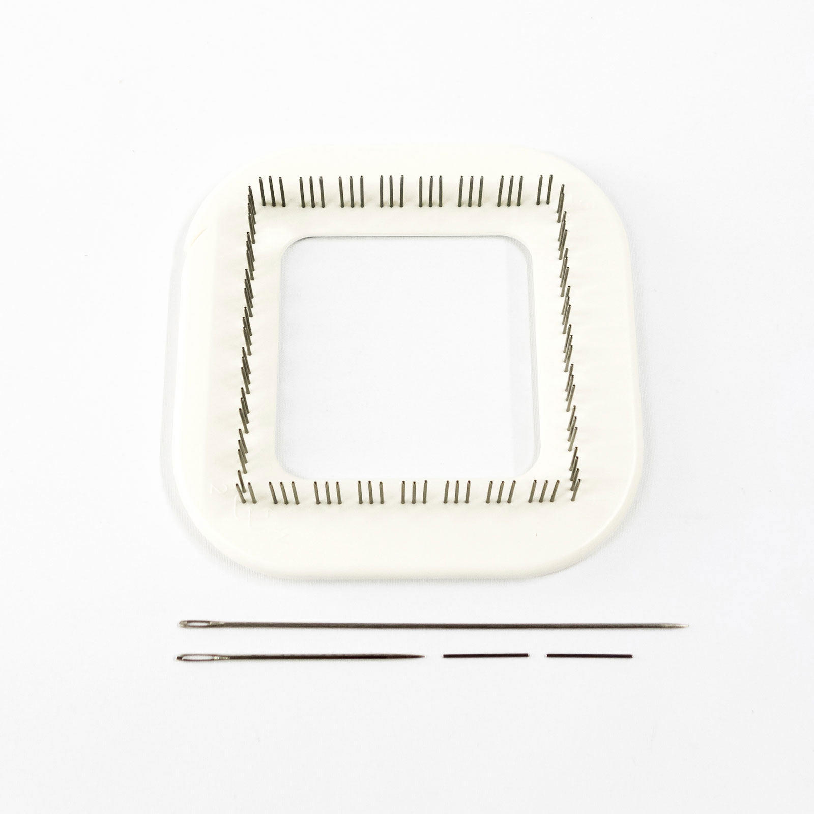Schacht Zoom Loom er liten og kompakt – kun 10 × 10 cm – og enkel å ta med seg. Vev hvor som helst, når som helst.