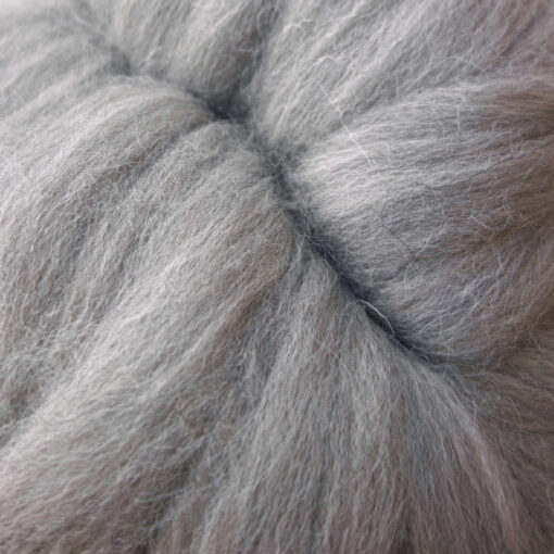 Suffolk – tops, .250 gram, grå er en fyldig ulltops laget av 80 % Suffolk og 20 % Half-bred-ull. Half-bred-sauen er en kryssing mellom en finfibret rase og en lokal engelsk rase, noe som gir spenst og volum i fibrene. Denne blandingen er perfekt for å lage ditt eget kraftige garn, og egner seg utmerket til håndspinning, toving og andre prosjekter som krever holdbarhet og fylde.